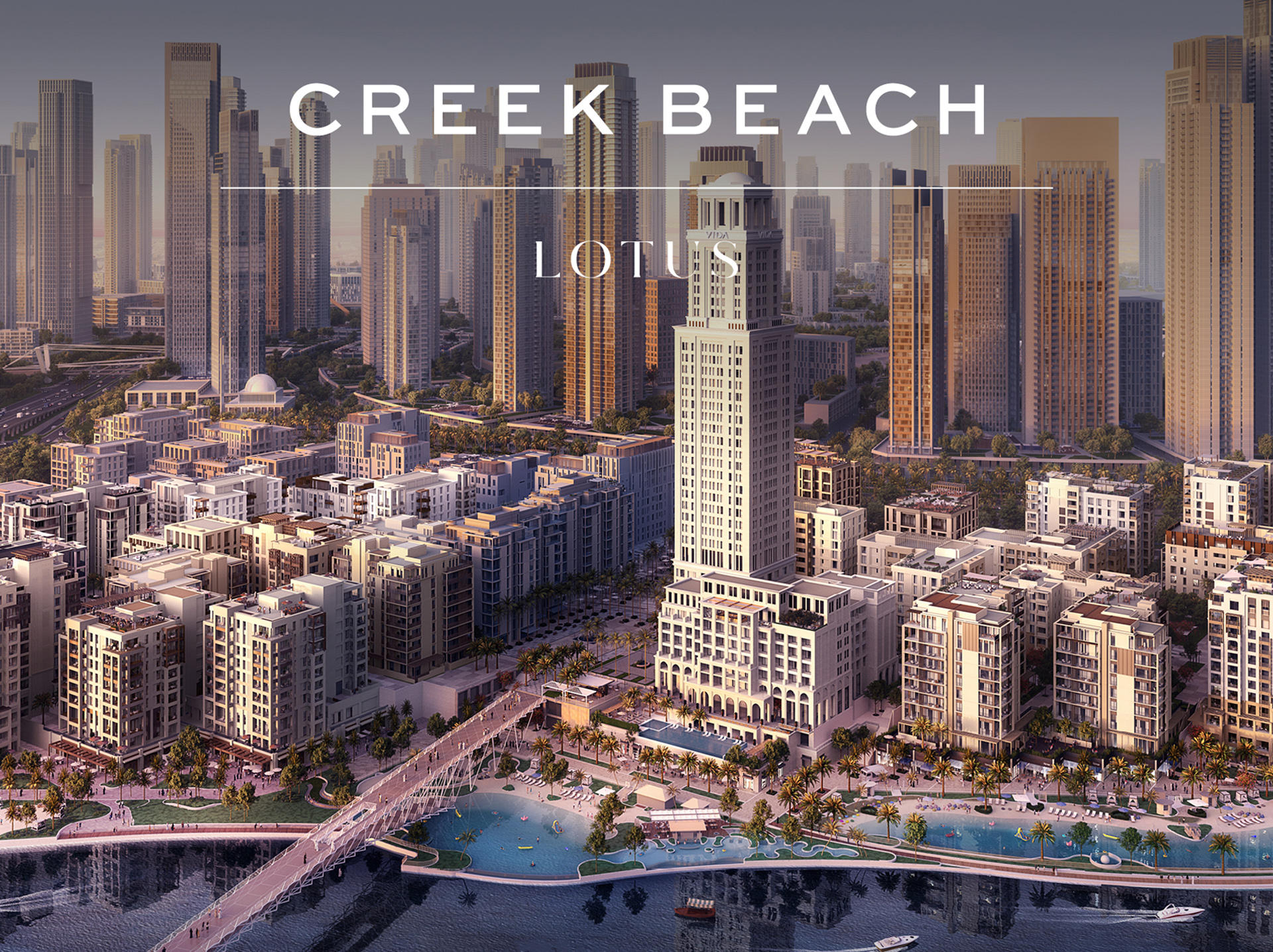 Sunset views surrounded by promenades. Its calm and pleasant surrounding environment presents a stress-free lifestyle environment, while make wonderful memories with its golden beach, a plaza full of unique experience and a boutique Vida Hotel.